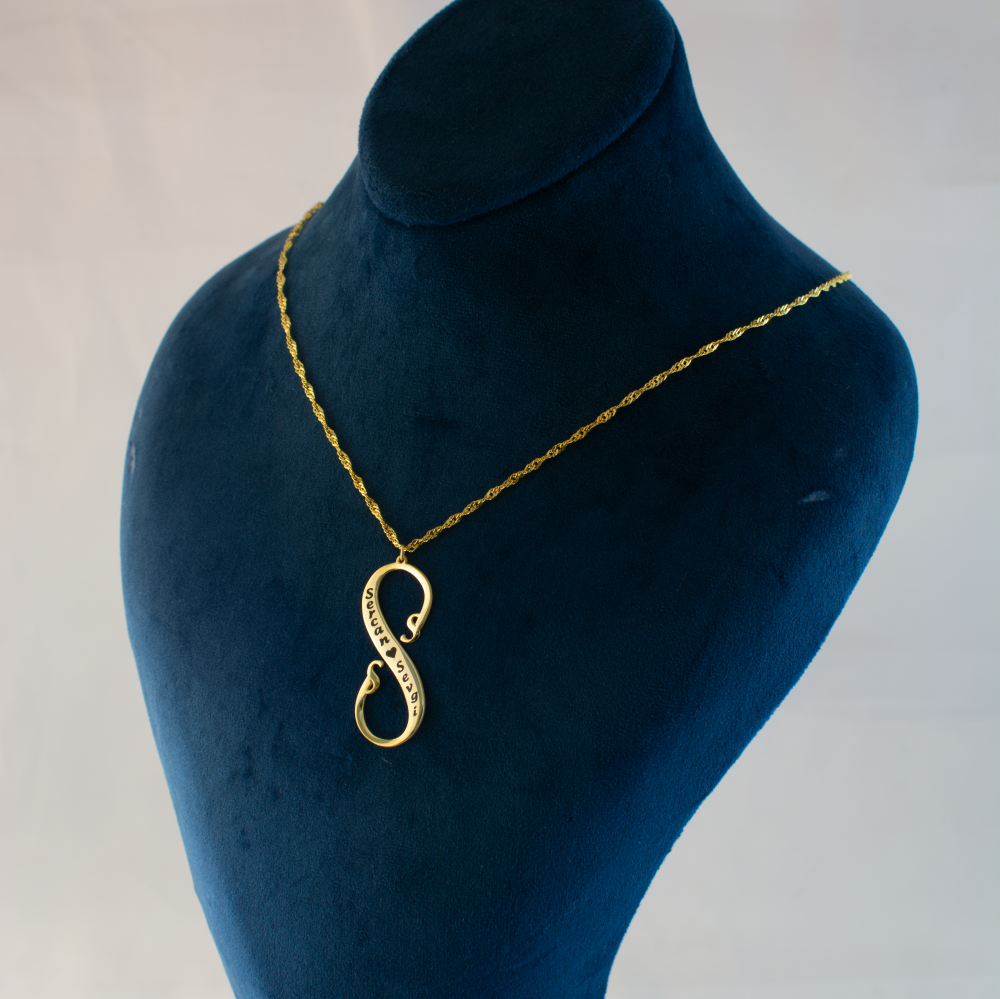Korkusuz Pırlanta kalitesiyle sunulan Çiftlere Özel Sonsuzluk İşareti 14 Ayar Altın Kaplama Kolye.