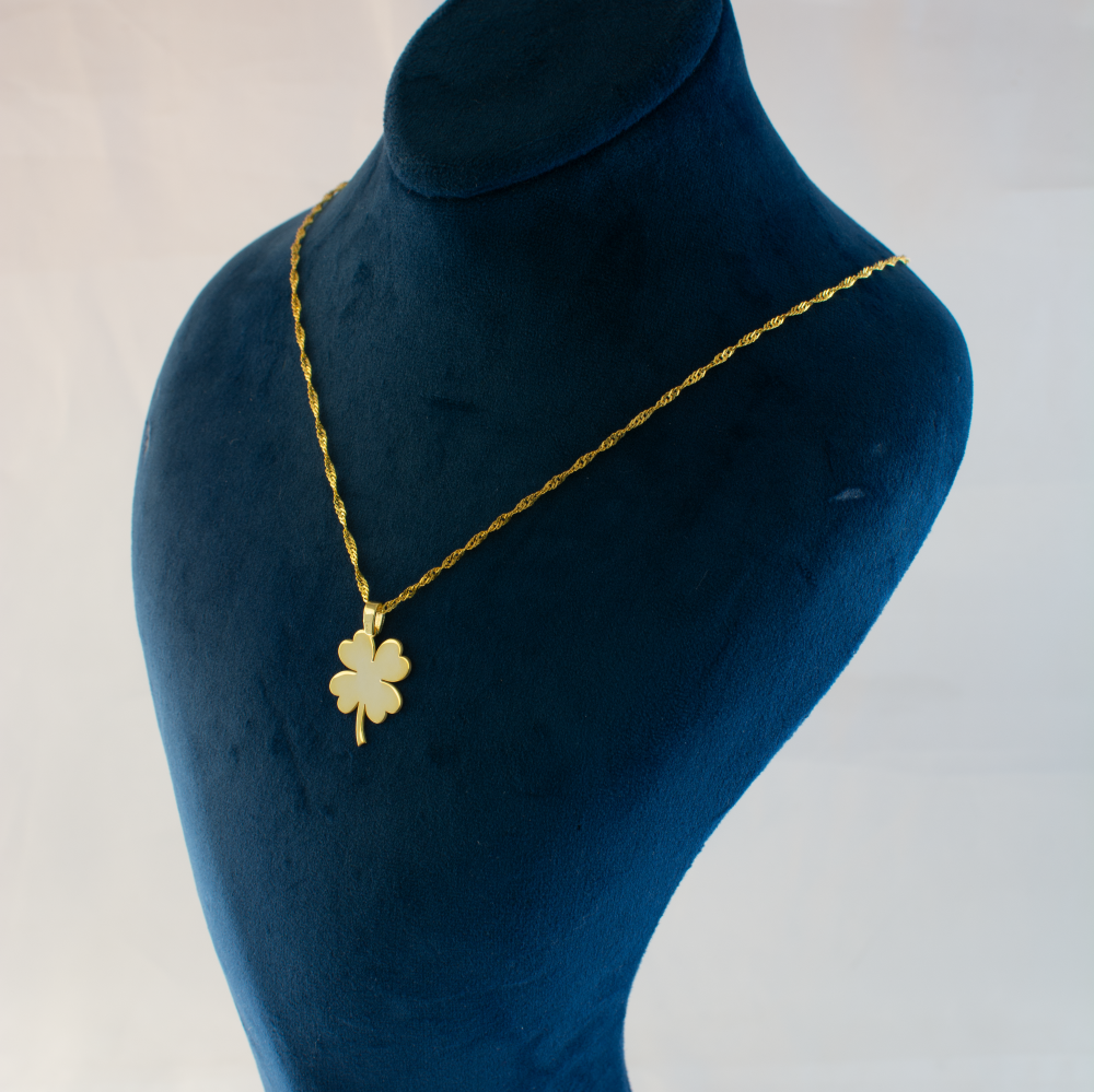 Korkusuz Pırlanta farkıyla sunulan Dört Yapraklı Yonca 14 Ayar Altın Kaplama Kolye.