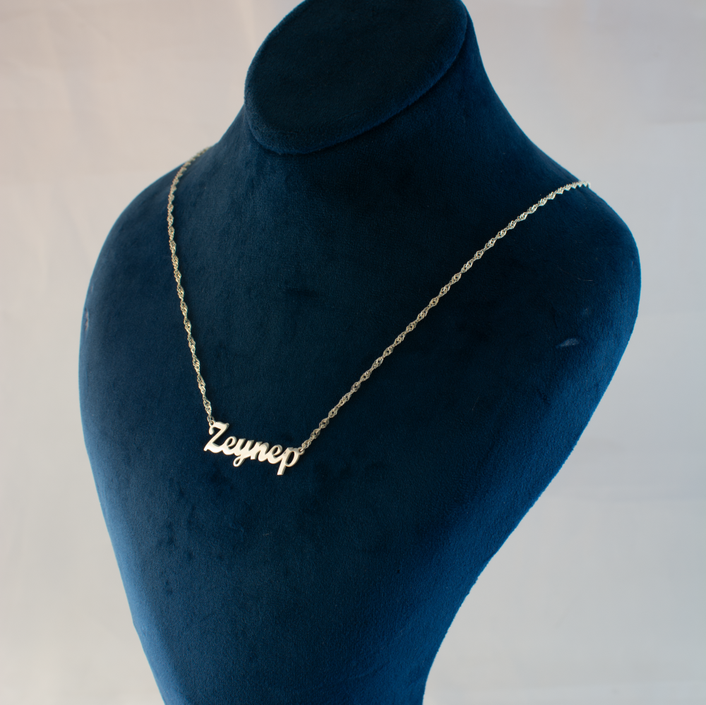 Korkusuz Pırlanta kalitesiyle sunulan İsme Özel Gümüş Kolye.