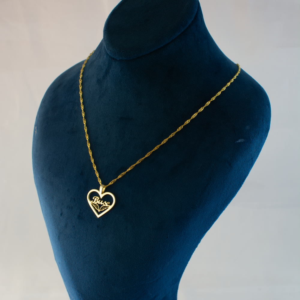 Korkusuz Pırlanta kalitesiyle sunulan İsme Özel Kalpli Kanatlı Altın Kaplama Kolye.