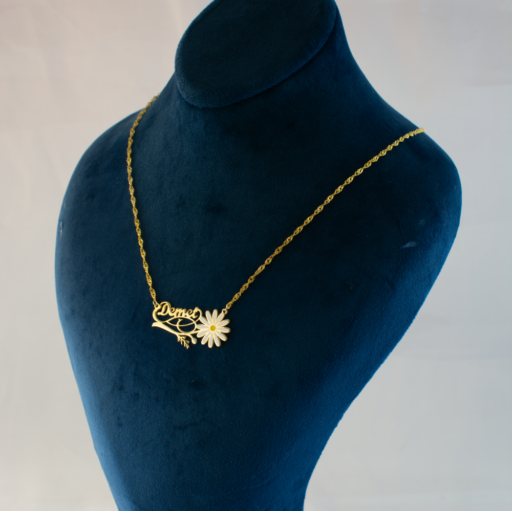 Korkusuz Pırlanta kalitesiyle sunulan İsme Özel Papatyalı Altın Kaplama Kolye.