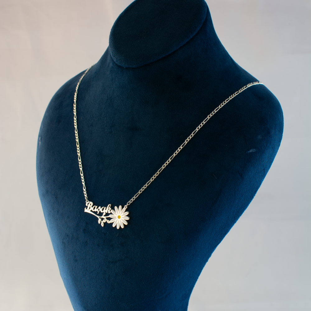 Korkusuz Pırlanta kalitesiyle sunulan İsme Özel Papatyalı Gümüş Kolye.