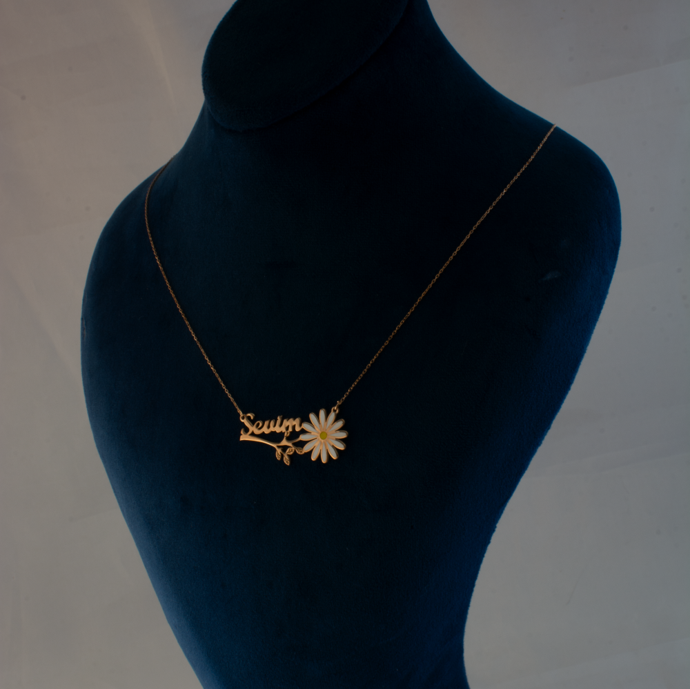 Korkusuz Pırlanta kalitesiyle sunulan İsme Özel Papatyalı Rose Altın Kaplama Kolye.